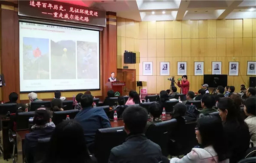 印开蒲靠自筹经费,曾四下湖北、重庆,十余次深入四川西部高原,通过对著名植物学家尔勒斯特·亨利·威尔逊于上世纪初留下的老照片拍摄地点的寻找,并在原来拍摄地点重新拍摄新照片后进行图像对比,真实地展现了中国西部百年的环境变迁。在报告中,印开蒲跟大家分享了踏上“追寻”之路的缘由,并通过植被景观、风土人情、环境气候等几方面新老照片的对比,直观地展示了中国西部百年来的种种变迁。对于这些经过千辛万苦才拍来的照片,印开蒲动情地说:这些照片,不仅记录了一段逝去的历史,讲述了一个难忘的故事,开启了一道记忆的闸门,甚至还可以预测一片未来的天地。正如印开蒲所言,在数百张展示的照片中,既有沉重的历史,也有动人的故事,通过印开蒲生动地讲述,现场不时传来阵阵掌声。
