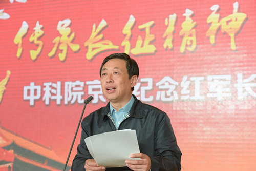 “长征精神代代相传,已深刻融入到我国改革发展进程中的各阶段和经济社会的方方面面,在科技创新领域和中科院建设发展中也得到了传承和发扬。”何岩在讲话中说,在长征精神的指引下,老一辈科学院人始终秉承“科学、民主、爱国、奉献”的优良传统,牢记使命,攻坚克难,成功完成了“两弹一星”、人工合成牛胰岛素等一批重大科技成果,奠定了新中国的主要学科基础,形成了具有中国特色的科研体系。进入新世纪,新一代科学院人继续发扬“唯实、求真、协力、创新”的良好院风,勇于担当,锐意进取,载人航天、探月工程等一批关键核心技术陆续攻克,量子卫星、深潜科考、FAST工程等一批重大创新成果不断涌现,为我国科技进步、经济社会发展和国家安全做出了不可替代的重要贡献。