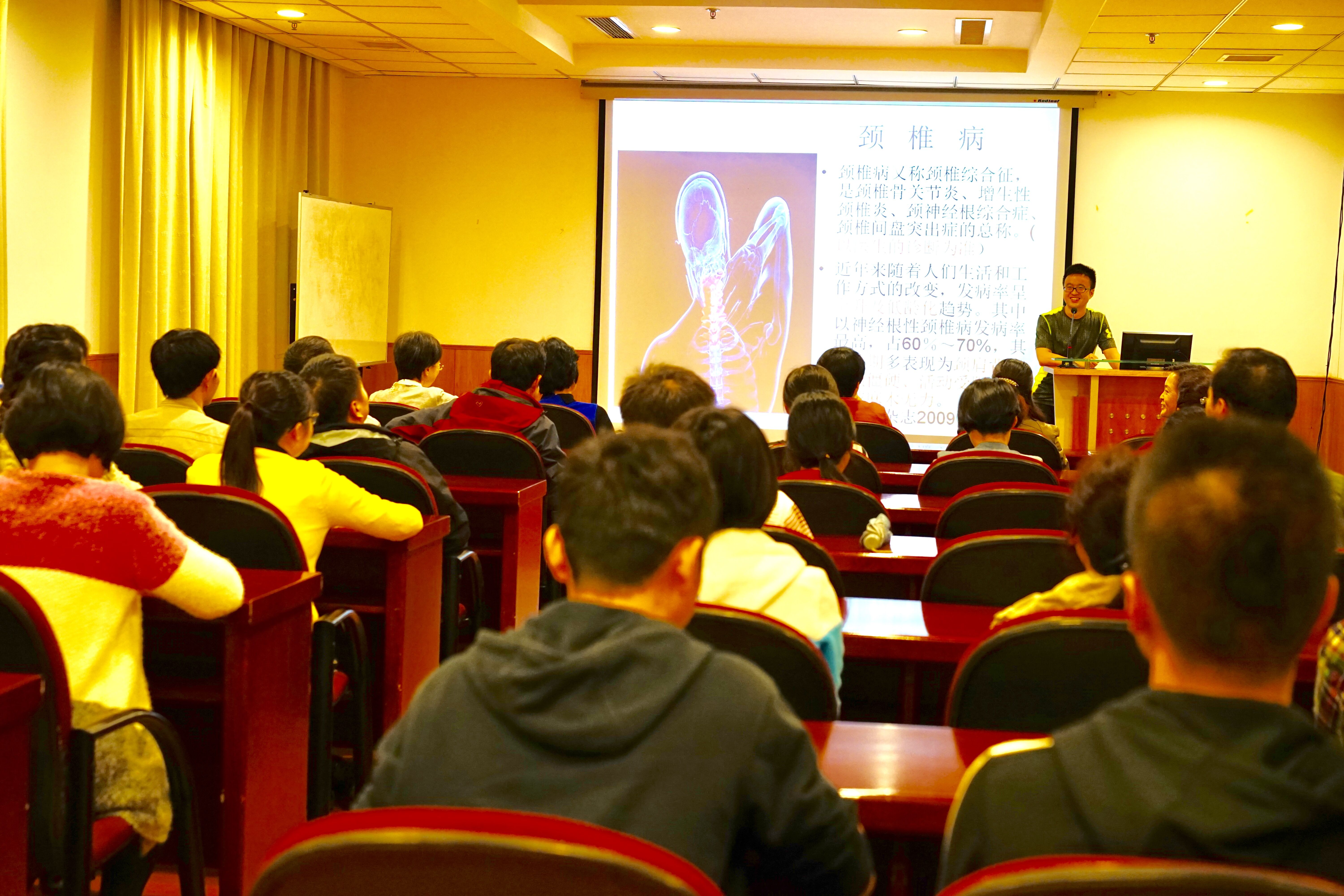 除了“认真科研”主题之外,活动周还增加了“用心生活”的新主题。围绕该主题,针对大家颈椎疼痛时有发生的情况,所图书馆请来专业健身运动康复教练来所分享了“颈椎病的运动康复”的知识。并和读者互动,通过实际操作教给大家颈椎按摩的科学方法,这些方法切实可行,得到读者的认同。