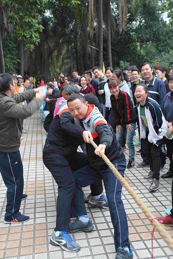 2016年职工运动会历时1个多月,前期完成了羽毛球、篮球、乒乓球和扑克拖拉机等单项比赛。闭幕式上,作为每年运动会的保留项目,退休职工表演了极富观赏性的剑舞舞蹈《梦江南》;研究生们奉献了活力四射的健美操表演。随后,协力竞走、连环跳绳和拔河竞赛项目,精彩纷呈,把运动会的气氛推向了高潮。最终,华南植物园园艺中心代表队夺得团体总分第一名,管理部门和研究生代表队并列第二名,科研队获得第三名;琪林公司和鼎湖山两个代表队分别获得参与奖,离退休代表队获特别奖。闭幕式后还进行了全园趣味体育竞技活动。