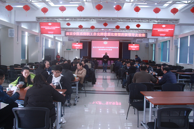 为进一步繁荣职工文化生活,加强分院系统内各单位之间的交流,1月14日,中国科学院南京分院体协举办了系统职工扑克牌掼蛋比赛暨所领导友谊赛。分院系统9家单位派出了40多名选手参赛。南京分院分党组书记、分院体育协会主席朱怀诚为本次比赛揭幕并参加友谊赛。