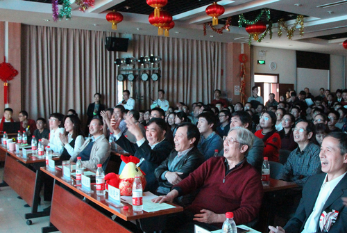三个多小时的新春联欢会精彩不断,掌声连连,场下观众在观看节目的同时,在微信墙上频频进行话题互动,对节目和演出者的夸赞不断,场上场下、线上线下洋溢着一片欢乐的气息。中科院院士徐建中、金红光为生肖属鸡的职工和学生送上了生肖纪念,并预祝大家在新的一年里取得佳绩;现场抽奖环节更是一次次将联欢会的气氛推向高潮。联欢会上,职工、学生同台表演,亦师亦友,用多种多样的形式祝福大家新年快乐,祝福研究所蒸蒸日上,越来越好。