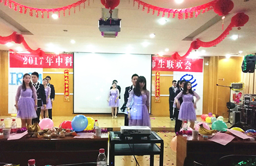 锣鼓喧天辞旧岁,欢歌笑语迎新春。整场演出精彩纷呈,高潮迭起,包含女神舞蹈、内涵小品、爆笑相声、疯狂街舞、吉他弹唱、歌曲串烧等形式。演出以欢快动感的开场舞《我的滑板鞋》拉开序幕,青春激昂的表演,为整场联欢会奠定了热情而浪漫、轻松而欢快的基调。深情款款的《车站》、《曲艺串烧》,斗志昂扬的《日出在即》,温情四溢的《南方姑娘》等一支支动听的歌曲牵动着每位观众的心。歌曲《等你等了那么久》、《如果你听见我的歌》悠扬动听,更是引来了满堂喝彩。硕二学生表演的相声《旅行杂谈》,幽默诙谐;水生所学生李高洁带来的古筝表演《高山流水》,婉转悠扬;多地方言版朗诵《海燕》,独具特色;自编自导自演的小品《科研人生》,内涵风趣,让观众们笑声不断,连连称赞。动感劲爆的《指尖溜走的青春》与现代性感的Never ever let me go两支舞蹈交相呼应,耀眼夺目,也为演出增光添彩。在热情似火的演出过程中,抽奖、游戏等环节更是将联欢会气氛一次又一次推向高潮,欢笑声和呐喊声响彻全场。最后,联欢会在师生大合唱《相亲相爱的一家人》中拉下了帷幕。
