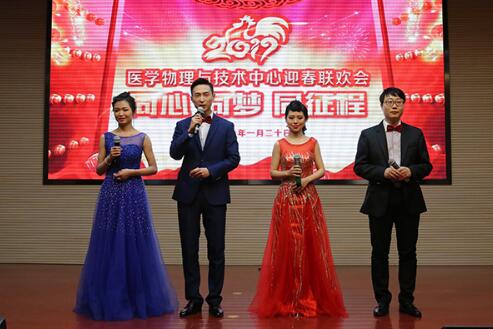 随后,主题为“同心、同梦、同征程”的2017年迎春联欢会开始。中心第三党支部带来了气势磅礴的开场舞《盛世花开》;第四党支部组织表演的自创小品《医院那些事》不仅幽默、接地气,并带有一丝温情和感动;第二党支部推送的四人相声《三句半》讲述了中心研究生生活中有趣的点点滴滴;第一党支部和第五党支部联合组织的改编歌曲串烧《我为自己代言》,大家用DIY的歌词唱出自己的工作、传达生活的美好;第四党支部的舞蹈《梦腾飞》、第五党支部的时尚动态热舞《舞动异次元》更是引爆了全场。经现场评委打分,节目《梦腾飞》和《舞动异次元》最终荣获一等奖。
