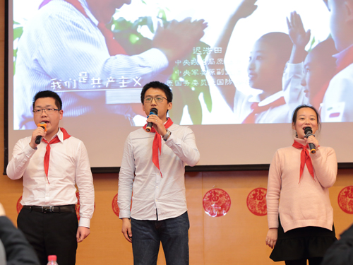 压轴大戏,老中青三代科学家及所领导竞唱大联欢重阵上演。从五六十年代到八十年代的代表们轮番上阵,歌唱着科研人心系祖国、默默付出的奉献精神,歌唱着科研人攻坚克难、不服老不服输的拼搏精神,歌唱着科研人勇挑重担、星火相续的奋斗精神。最后,所领导们的合唱《我们的队伍向太阳》将晚会推向高潮,引起全场共鸣,大家纷纷起立大合唱,恢弘的气势,俨然战场的号角,新的征程已然开启,新的一年必定会再创辉煌!