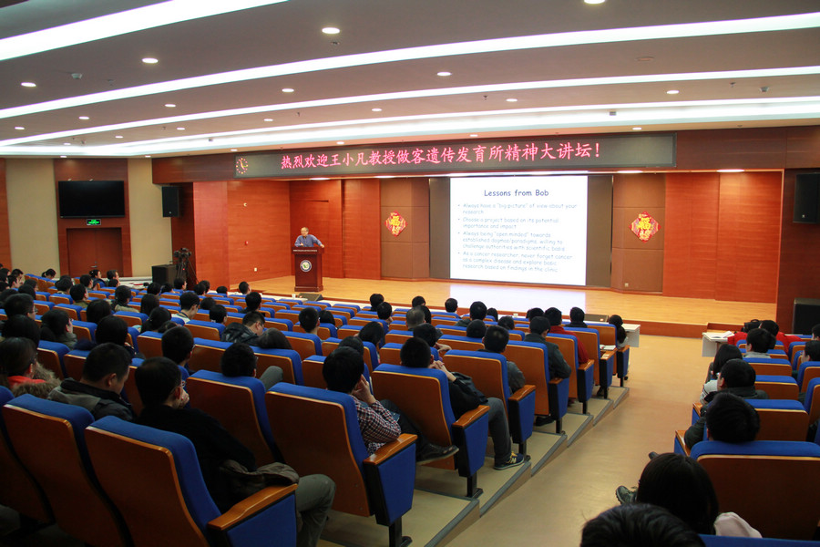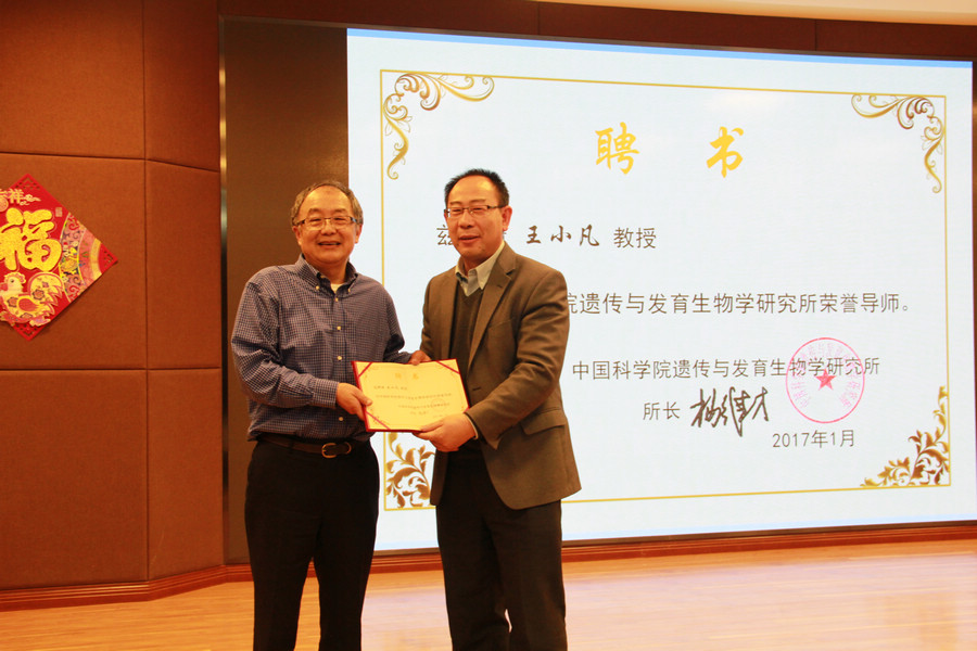 为进一步加强研究所人才队伍建设,针对青年人才的发展需求,中国科学院遗传与发育生物学研究所建立了由国内外知名学者担任“荣誉导师”的人才培养制度,旨在加速人才成长进程,解决人才断层问题。2016年12月,遗传发育所人力资源部邀请“荣誉导师”美国杜克大学终身讲席教授王小凡和研究所青年研究组长座谈。在与会人员的强烈建议下,为了让更多的青年人才能够共享优质继续教育资源,近日,研究所再次邀请王小凡作客“中科院遗传发育所精神大讲坛”,带来了题为A Personal Journey的专题报告,和青年研究人员共同分享科研生涯感悟,工作的酸甜苦辣,探讨如何走好科研人生之路。全所职工、博士后、研究生和其他兄弟单位代表约300余人聆听了报告,多位研究员到会交流。会议由遗传发育所党委书记胥伟华主持。