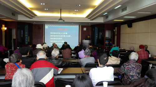 随后,主讲嘉宾余希杰以通俗易懂的方式,向老同志讲解了骨质疏松的定义及危害、自我判断与诊断、如何预防、治疗问题以及误区等五个方面的医学知识,并与大家进行现场互动。讲座后,余希杰还提供骨质疏松测试仪免费为到场老同志进行筛查检测和诊断,得到了老同志的一致好评。