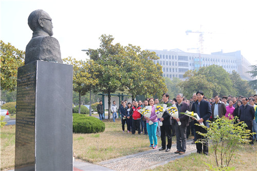 上午10时,固体所师生在小楼广场集合,所领导代表全体人员向葛庭燧先生的铜像献花,大家共同鞠躬致礼,表达了对葛庭燧先生的崇敬和怀念之情。