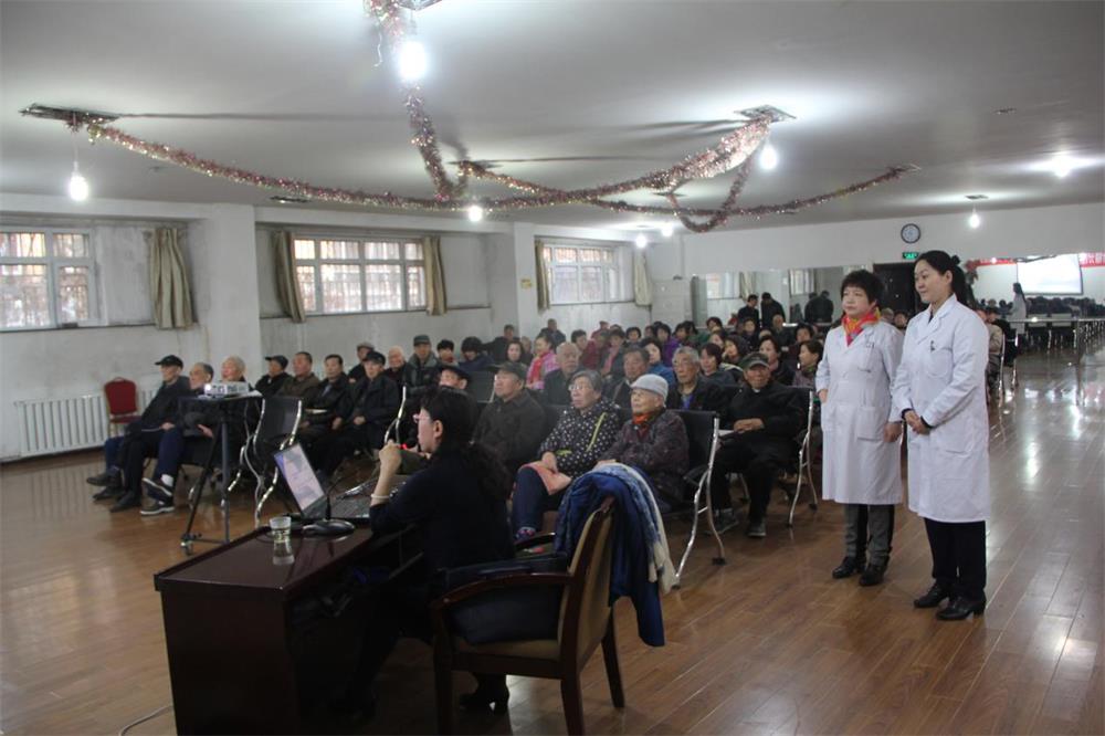 讲座结束后,二工科北卫生站的工作人员为新疆分院离退休人员发放了健康知识宣传单,积极为他们测量血压、称体重,细心询问他们的身体状况,并根据他们的自身情况提出了针对性的治疗建议。