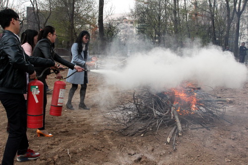培训结束后,举行了消防演练,广大职工、研究生亲自上场,仔细检查灭火器完好情况,并实际操练了灭火器的使用。