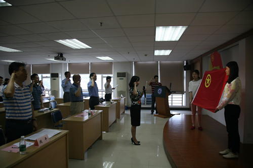 会议开始,广州分院机关全体人员在团旗下重温入团誓词、共唱中国共产主义青年团团歌。通过重温入团誓词、唱团歌,进一步唤起全体团员青年的爱国热情,强化团员青年的先进性和光荣感,坚定共产主义远大理想和中国特色社会主义共同理想,激发大家在工作中贡献力量、展现风采。
