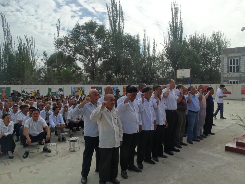 7月1日,在中国共产党成立96年之际,九位老党员分别参加了阿依玛克村、墩阿热希村升旗仪式和重温入党誓词活动,体验了在“访惠聚”工作队驻村后给基层组织建设带来的可喜变化。重温入党誓词活动结束后,新疆分院离退休党支部副书记蒋克定在阿依玛克村面向全村党员以及入党积极分子、四老人员讲了一堂题为《反对民族分裂,维护社会稳定》党课,收到了预期的效果。随后,老同志代表分别向两个村汉语夜校的孩子、村四老人员赠送了由新疆分院离退休职工自发捐款购买的学习用品和生活用品。