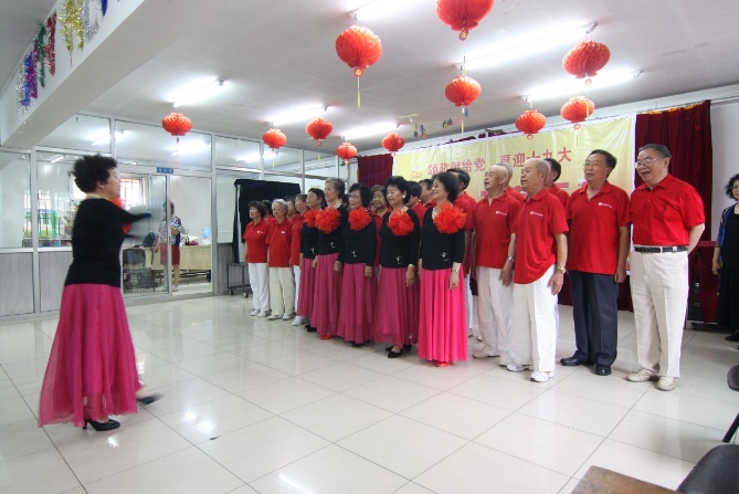 文艺汇演由张敏、李士范两位老同志主持。演出在全场合唱《没有共产党就没有新中国》的激昂旋律中正式拉开帷幕。合唱《情对祖国讲,爱对祖国说》、诗朗诵《乡愁》感情真挚、极富感染力;独唱《草原花月夜》、《西口情》,对唱《又见北风吹》、《军港之夜》、《为了谁》曲调优美、韵味无穷;民族舞《梦见你的那一夜》(藏)、《希望》(朝)、《唱给妈妈的歌》(新疆)、《爱我中国》(朝)充满民族风情、令人陶醉;模特表演舞姿轻盈、美不胜收;几位八旬老同志组成“80组合”表演的《社会主义好》,铿锵有力、令人振奋。最后,文艺演出在《唱支山歌给党听》的悠扬歌声中圆满结束。