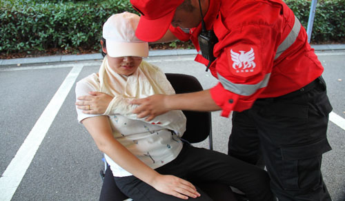 演练过程中,还安排了现场急救常识的学习。现场气氛热烈,员工及研究生通过演练,学习了止血包扎等创伤急救、心肺CPR、逃生绳结及救援装备体验,了解掌握了日常工作生活中必备的自救互救知识,同时也提升了安全意识。技能培训中特别增加了门卫防爆技能的培训,保安人员上了一堂业务技能提升课。