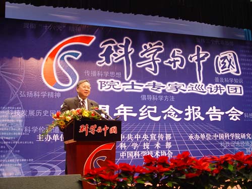 全国人大常委会副委员长、中国科学院院长路甬祥院士在"科学与中国院士专家巡讲团"两周年报告会上做"世界科技的发展趋势及其影响"的报告。