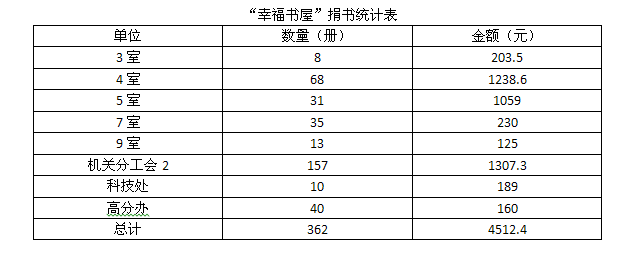 电子所此次共募捐书籍362册,书籍原价总计4512.4元。主要包括文学、艺术、趣味知识和科技生活类等,适合青少年阅读。