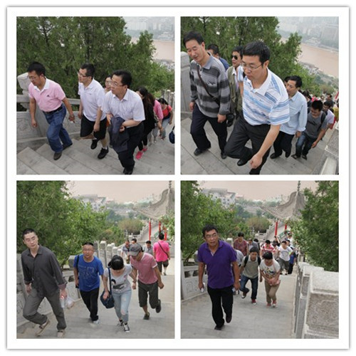 6月15日,天空一片晴朗,太阳初露笑脸,为登山比赛提供了适宜的环境。上午8时左右,近400名职工、研究生聚集在白塔山下,开始登山比赛的热身准备。8点30分,随着一声令下,登山队伍整装出发,大家在欢声笑语中你追我赶,迅速向山上挺进,沿途中,经过飞檐斗拱的建筑群,穿过红柱环绕的亭榭回廊,迈进树高林密的山间小路……一边感受着曲径通幽、山势层叠起伏的自然美景;一边尽享着呼吸新鲜空气、锻炼身体的登山乐趣。