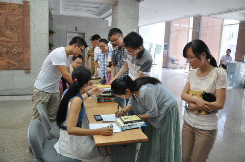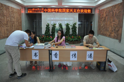 6月11日至12日中午,由中国科学院国家天文台团委和研究生会组织的“书香传递”活动在天文台图书馆前举行。本次活动由协作一片片长单位国家天文台团委号召协作一片各研究所统一开展。活动分为所内捐书、所内赠书和对外捐赠三个阶段。各研究所内先进行捐书和赠书活动,最后各所将剩余的捐赠图书汇总后统一对外捐赠。经过国家天文台团委和研究生会成员的共同努力,“书香传递”活动的台内捐书阶段顺利完成。