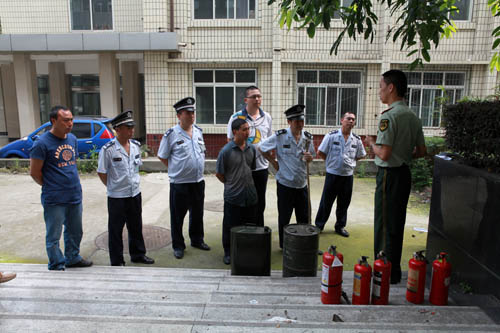消防官兵首先介绍了火灾防控的重要性和有关消防安全知识,有针对性地对成都山地所可能存在的火灾隐患点进行了分析,对灭火器的储存方法、使用方法和注意事项进行了详细的讲解,并回答了安保人员提出的问题。随后,10名安保人员在消防官兵的示范下,轮流对油盆火进行干粉灭火器的实战演练培训。