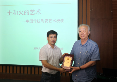随后,来自清华大学美术学院的杨永善教授为大家做了题为“中国传统陶瓷艺术漫谈”主题报告。报告开始前,王华代表该所向杨永善颁发了文化讲坛贡献奖奖牌。