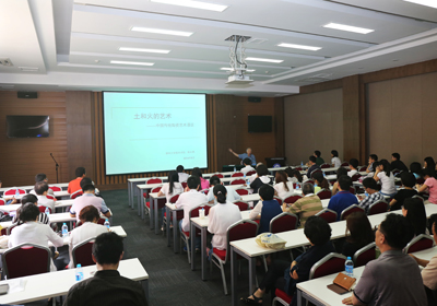 在接下来的报告中,杨永善为大家讲述了从新石器时代到清朝,中国历朝历代传统陶器和瓷器的演变过程,并详细分析了其风格特点和艺术成就。观众们不仅欣赏了中国传统陶瓷代表性作品的唯美形态,同时也深入了解了秦兵马俑、唐三彩、青花瓷等中国著名陶瓷产品的特点及其发展的历史背景。杨永善用他渊博的学识为大家展现了一幅幅精美绝伦的陶瓷作品,并介绍了各个历史时期出现的著名窑厂和主要陶瓷类别,以及由陶瓷引发出的中国各个历史时期的文化特征。他认为,陶瓷工艺可以称之为“土与火的艺术”,在制陶过程中一定要将土和火这两种元素完美结合,才能烧制出巧夺天工的陶瓷作品。杨永善将其巧妙地类比为科学研究与文化艺术之间的关系,他认为,科学和艺术是不能绝对分离的,离开了艺术的熏陶,科学研究很难迈上一个新的台阶,而只有将科学技术与文化艺术有机融合,才能碰撞出新的火花,推动科技和文化事业的共同发展。他的这一观点也与大连化物所持续推进创新文化建设的思路十分吻合。杨永善性情真挚,语言幽默,打动了在场的每一位观众,现场不时爆发出阵阵热烈的掌声。