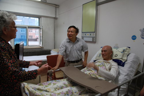 王启尧首先到辽宁省金秋医院看望了沈阳分院原党组书记、老红军丁岩及原分院副院长盛世骏,王启尧亲切地向家属询问了两位老领导的身体状况和病情并祝愿他们早日康复,同时希望家属在照顾好老人同时要保重自身身体健康。
