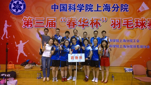 6月28日,中国科学院上海分院第三届“春华杯”羽毛球比赛在华东师范大学羽毛球馆举行,上海分院共有15支参赛队伍参加竞技。由杨玉社、谭昌恒、赵强、杨杨、曲欢欢、李艳玲、何世君、黄淑娟、张楠、盖伟等十名职工学生组成的上海药物研究所羽毛球队,经过一整天的拼搏,以第三名的好成绩取得比赛季军。
