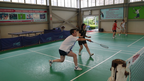 为了组织好此次比赛,上海药物所工会组织近20名所内羽毛球爱好者作为候选队员。并利用两个周末组织赛前练习,根据打球水平、攻防特点,讨论布阵,从中遴选10名队员代表研究所参赛。研究生李骏作为比赛边裁,维持比赛秩序。