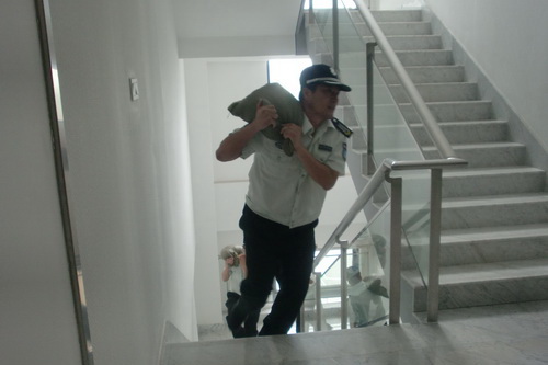 为确保台风汛期中国科学院上海生命科学研究院蛋白质中心园区安全度汛和抢险救灾工作高效有序进行,应对即将到来的台风、暴雨和汛期等各种极端灾害性天气造成的危害,结合海科路园区的实际情况,蛋白质中心于7月18日下午1:45分,由上海生科院安全主管周建国带队观摩与指导,安保、物业、保洁三家社会化服务公司服务人员及各技术系统、研究组代表参加了防台、防汛演练。