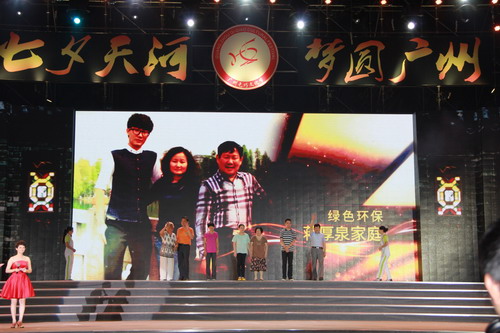 晚会现场,大会宣读了2014广州天河区十大“最美家庭”名单,其中中国科学院华南植物园职工蒋厚泉、周艾蓉获得了“绿色环保家庭”称号,石奇珠为获奖家庭颁发了荣誉奖牌。评委组对获得十大“最美家庭”的“绿色环保—蒋厚泉、周艾蓉家庭”给予了肯定评价:一个幸福和谐、充满关爱的绿色环保家庭。夫妇俩都在华南植物园工作,蒋厚泉十几年来积极从事科普旅游工作,他率领科普团队开展了各类绿色环保科普活动,先后荣获广东省、广州市旅游科普“先进工作者”、中科院“十一五”科学传播先进个人等光荣称号。周艾蓉从事医疗和预防保健工作20多年,在平凡的岗位上做出了不平凡的贡献,她尊老爱幼、勤俭持家,是大家心中安静低调的“知心大姐”,2013年她被广州市评为“廉内助”的光荣称号。他们默默支持彼此的事业,用心教育孩子,用爱和奉献构筑起一个夫妇和谐、父慈子孝、充满绿意的和谐幸福家庭。