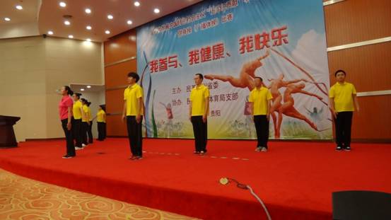 金风送爽,由民革贵州省委会举办、民革贵州省直体育支部协办的坚持和发展中国特色社会主义“五学三贡献”学习实践活动健身操(广播体操)比赛,于8月8日——全国第6个“全民健身日”在贵州省政协议政厅盛大开幕。本次比赛秉承“我参与、我健康、我快乐”的主旨,吸引了全省民革组织11支代表队共120名队员参加。在中共中国科学院地球化学研究所党委、党办和所工会的指导和支持下,民革地化所支部(即民革贵州省直第七支部)主委万泉带领部分地化所民革党员以及少数研究生联合省直第六、八支部,以“强身健体,振兴中华”为口号参与了本次比赛。