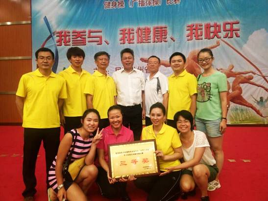 比赛于下午3点整正式开始,炎热的天气挡不住参赛队员的热情,各参赛队多姿多彩、健康活泼的精彩表演博得了场下阵阵掌声。在比赛中,地化所民革党员和参赛师生尽心尽责,有力和到位地完成了每一个动作,体现了科技工作人员进取向上的精气神。经业内专家严格评判,地化所支部荣获广播体操比赛三等奖。民革贵州省委会主委王世杰等领导出席活动并为各代表队颁奖,王世杰主委在讲话中充分肯定了本次活动的积极意义。