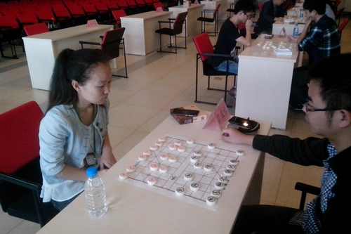 中国象棋比赛共有该所各个部门的20余人参加。比赛中为了增加比赛的激烈性,选取了积分编排赛制,使每一轮的比赛都十分紧张,中午午休前的一盘棋下了将近2个小时,待结束时二位选手的午饭都已经凉了。比赛中陈琪一马当先,是前五轮唯一保持全胜的选手,但第六轮惜败于周腾,而此时忻寅强、王鑫等积分追近,使比赛局面变得极度混乱,冠军归属混沌不清。最终在末轮第七轮比赛中忻寅强后来居上,战胜王龙积12分获得冠军,而陈琪再负,积10分屈居第二。全部选手中竟然没有全胜者,充分体现了比赛的残酷和激烈。