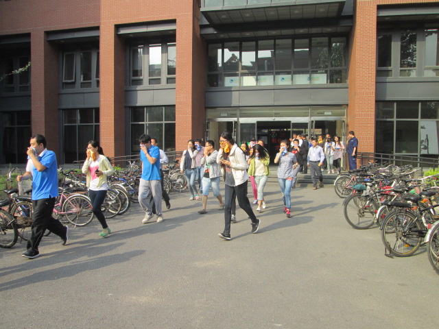 疏散练演前,研究所通过播音系统进行了消防和应急知识的宣传。演练时,从发出警报信号开始,仅仅用了短短的3分钟,广大职工学生按预定方案快速有序的到达指定场所,整个演练过程安全顺利,达到了预期效果。