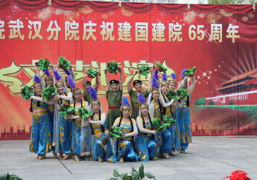 在今年中国成立65周年,中国科学院建院65周年前夕,为大力宣传中科院与祖国同行65年,表达全体中科院人的科学情、中国梦,武汉分院隆重举办了这场文艺汇演。武汉岩土所派出的新疆舞“丰收时节”和小品“科苑好学生-2”在演出中获得成功,受到热烈欢迎。