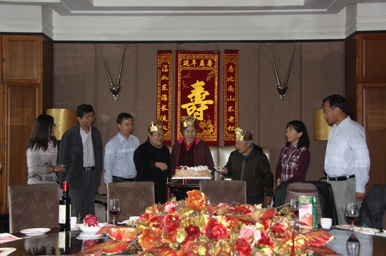 大家一起切生日蛋糕、合影留念、回忆往昔、分享长寿经验,度过了一个欢乐祥和的重阳节。