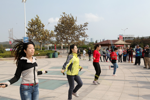 60米托球跑要求速度与技巧相结合,二人三足更加注重团队的默契程度,赶猪跑、螃蟹跑则是笑料百出,铅球、立定跳远、跳绳等传统项目竞争激烈。篮球射门和地滚球仍是历届运动会最火爆的项目,看似简单,但想一举砸倒10个矿泉水瓶却极困难,而有人三轮过后一瓶未中也堪称奇迹。压轴项目依然是拔河比赛,经过一番排兵布阵,参赛队员摩拳擦掌、跃跃欲试,随着裁判员一声哨响,双方队员咬紧牙关、怒目圆睁,憋足一口气,脚前蹬、身后仰,一时间号子声、呐喊声、助威声此起彼伏,瞬间点燃了场上激情,将运动会气氛推上高潮。