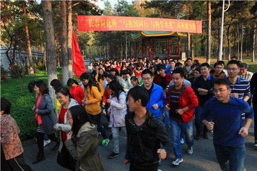 为进一步推动全民健身运动,展现应化人精神风貌,10月17日下午,中国科学院长春应用化学研究所举办“与祖国同行,与科学共进”2014环所健身跑活动。在所工会的精心部署和各部门工会的认真组织下,活动得到了大家的积极响应,共有1600多名职工和研究生参加。