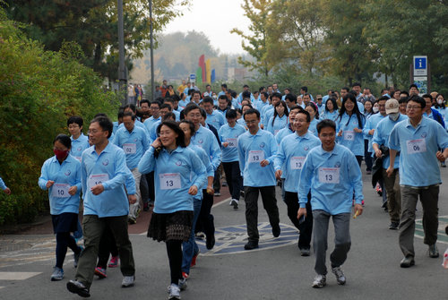 下午2:15,党委书记赵刚一声哨响,13支队伍迈着坚定的步伐,走出起点,迈向终点。秋意正浓,凉意渐起,红色赛道上蓝色的队伍与公园里美丽的秋色交相呼应,成为公园里又一道风景。