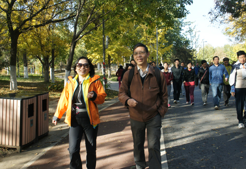 一路上,大家沿着5公里健走道,呼吸着新鲜的空气,交流着相互体会,欣赏着五彩缤纷的秋日美景,情绪高涨,精神抖擞,步履轻盈。途中,一些成员被美景吸引,带着家人和孩子驻足欣赏;一些摄影爱好者们,不时按下快门抓住美丽的瞬间;一些成员到达终点后仍兴致盎然,继续在园中行走观光。