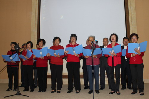 大会开始前播放了退休职工王学海的一批摄影作品,与会代表欣赏了一幅幅美丽的大自风光和王学海精湛的摄影技术。随后进行了以“同心共筑中国梦”为主题的文娱表演。所表演的节目都是由离退休干部职工自编、自排、自演的,有男声小组唱、女声小组唱、女声独唱、表演唱、舞蹈、大合唱、乐器表演等12个节目。表演以唱响“中国梦”的合唱《中国梦》、《我的中国梦》等歌曲拉开序幕,期间研究生进行一个舞蹈表演助阵。节目内容丰富多彩,演出高潮迭起、掌声阵阵、欢乐融融。