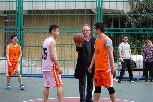 11月14日下午,中国科学院上海巴斯德研究所研究生年级交流篮球赛在中科院上海生命科学研究院篮球场举行,一、二年级和高年级研究生各自组成联队参加了比赛。所长艾德铭(Ralf Altmeyer)教授担任开球嘉宾,工会主席黄忠研究员、常务副主席贾晋华以及研究组长龙钢研究员、Dimitri LAVILLETTE研究员等到场观摩指导。