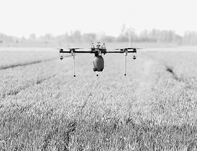一架无人植保机在河北省南皮县东五拨核心示范区喷洒农药。新华社记者金立旺摄