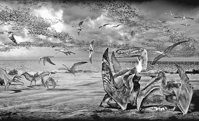 中科院古脊椎动物与古人类研究所汪筱林研究员、巴西国家博物馆亚历山大·凯尔纳(Alexander Kellner)等古生物学家组成的国际合作研究团队,在6月5日在线出版的国际著名刊物《现代生物学》(Current Biology)及印刷版上,以封面文章报道了一个重大发现——汪筱林领导的新疆哈密科考队,通过近10年的野外考察,在哈密地区发现一处新的白垩纪翼龙动物群。这一翼龙化石分布区不但是世界上已知最大和最富集的翼龙化石产地,也是目前世界上唯一一处立体保存的翼龙蛋和雌雄个体共生的翼龙化石遗址。