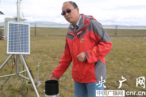 站长邬光剑在介绍纳木错站。