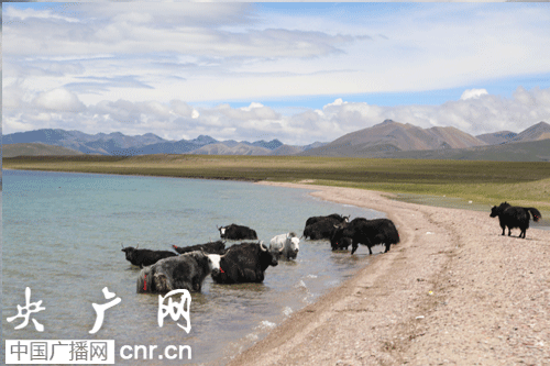 科研人员引来好奇的牦牛。