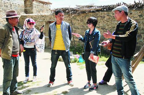 记者在吉纳村采访大学生村官和农牧民代表扎西 郭嘉摄