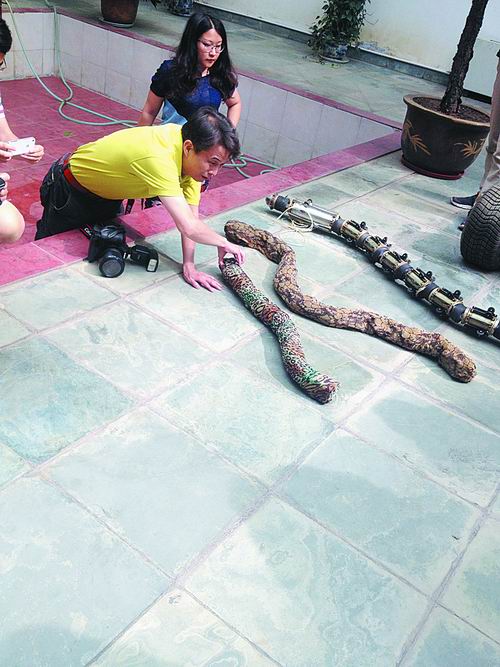 “这是我们研发的废墟搜索可变形机器人,它可以根据环境改变自身的构型,适应更多地震废墟。它能利用自身携带的红外摄像机、声音传感器,将废墟内部的情况实时传回后方控制台。”桑子刚介绍说,这种废墟搜索机器人在四川芦山地震的现场救援中首次使用,曾协助国家地震紧急救援队完成了多处废墟和危楼的生命搜索排查和灾情勘察任务,有效提高了搜索救援行动的效率。