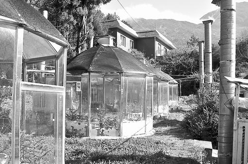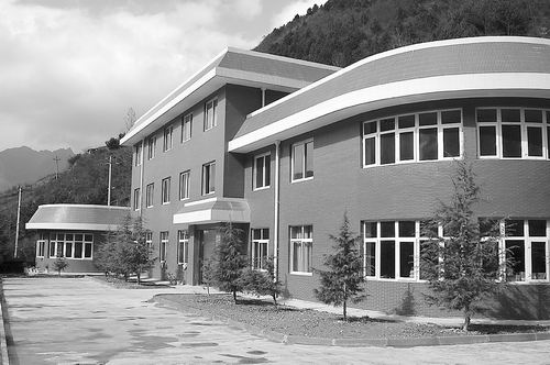 茂县站里类似于蒙古包的设备,是全球气候变化模拟系统。掩映在树林里的小楼是样品处理实验室,可做烘干称量和一些物质分析。气象观测站在对面山腰上,工作人员每天穿过马路和小河走到对面的山坡上采集数据,山腰上排列的几座铁塔是气象观测塔。