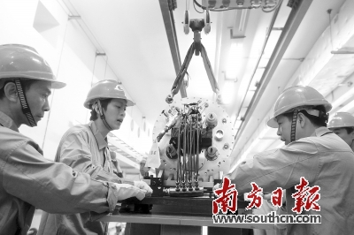 10月15日上午,由中国科学院和广东省人民政府共同建设的中国散裂中子源项目(Chinese Spallation Neutron Source,简称CSNS)的第一台设备——负氢离子源在广东东莞地下隧道安装,标志着该项目正式进入设备安装阶段,为2016年试运行打下坚实基础。